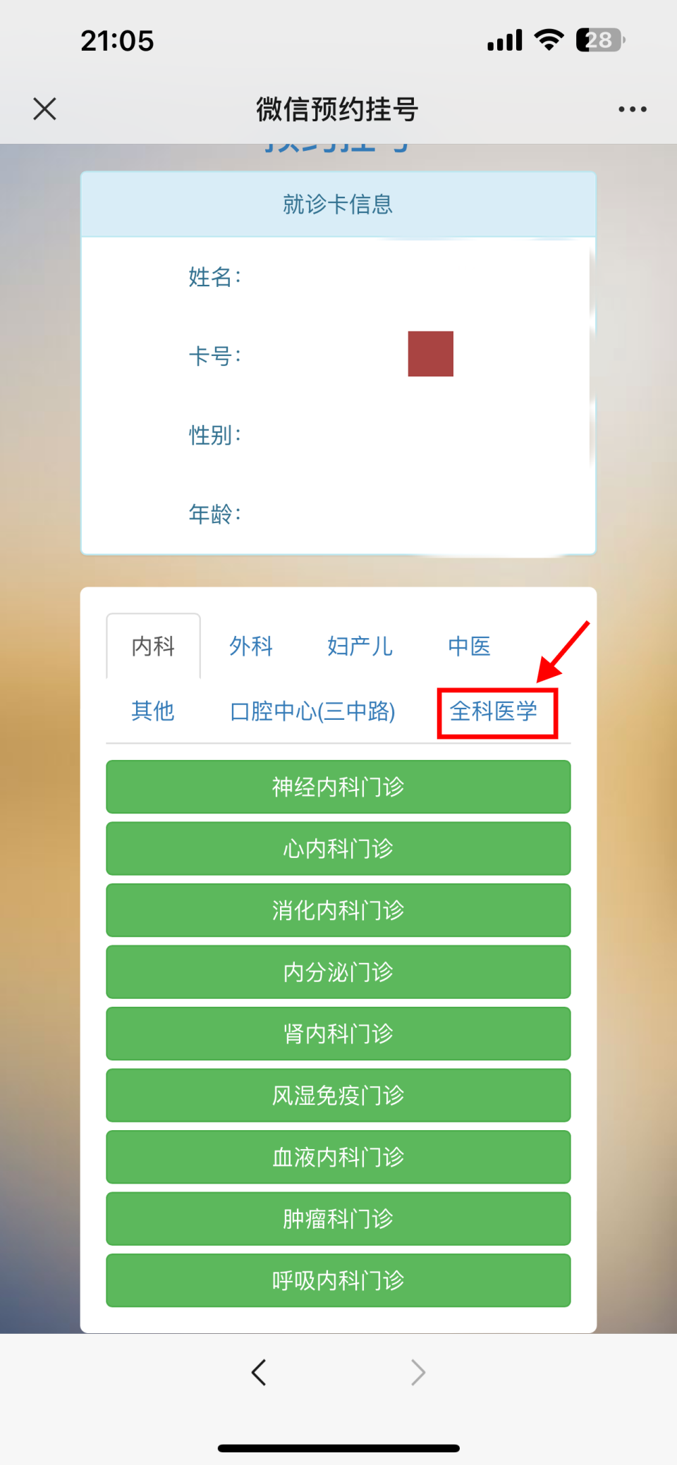 门诊地址:门诊楼三楼西侧全科医学科门诊、慢性病门诊、老年病门诊。