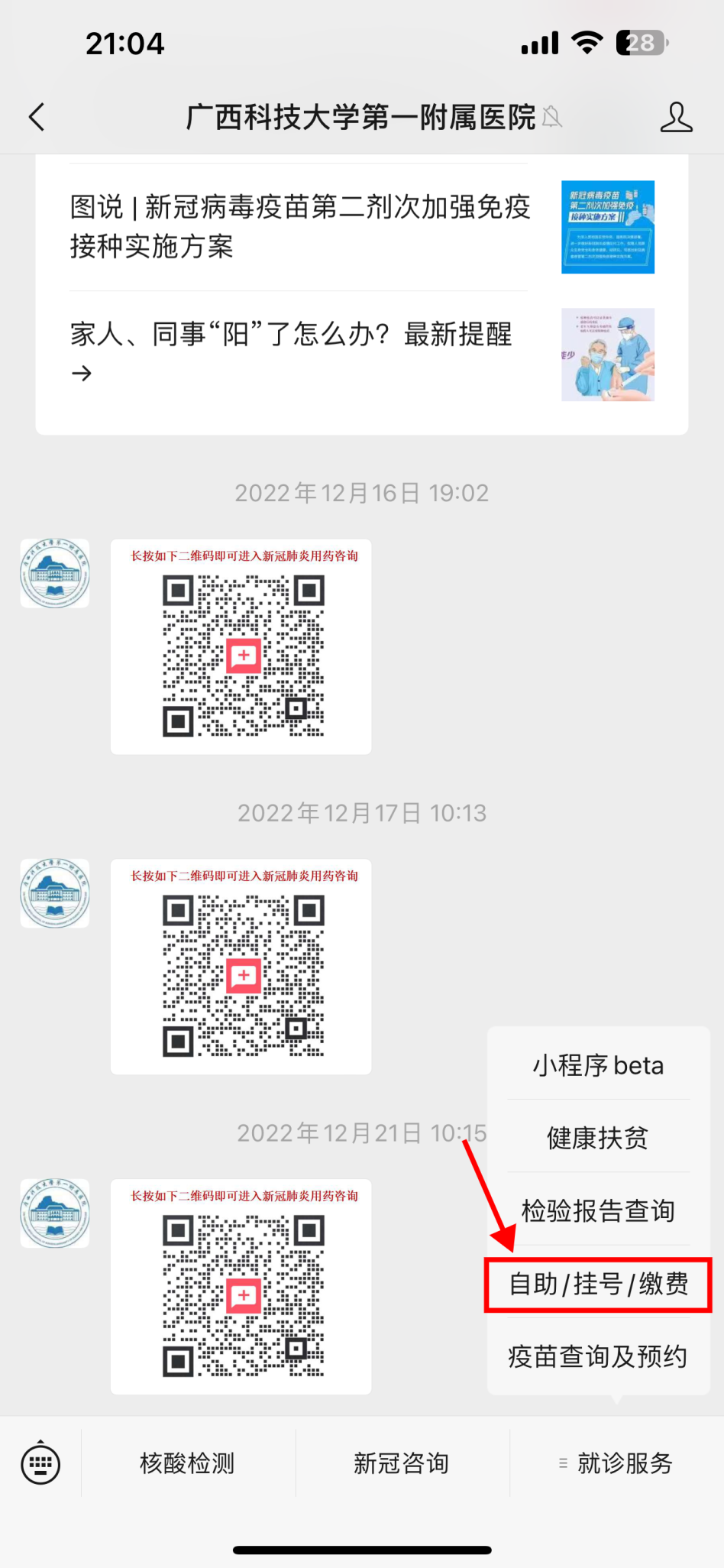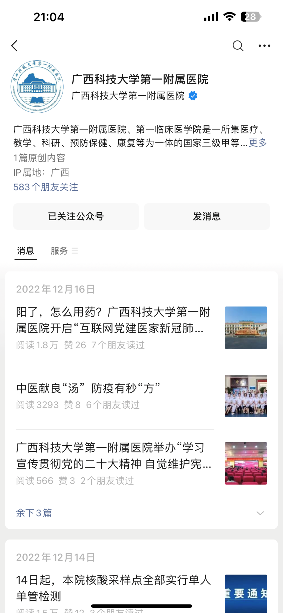 1.关注“广西科技大学第一附属医院”微信公众号。