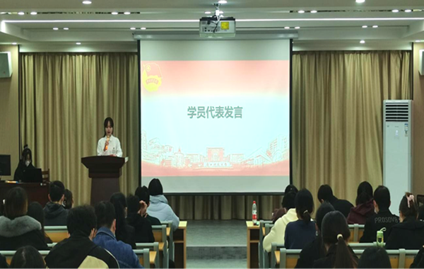 接着,唐艳红老师对本次青马工程培训班的基本任务进行介绍。她表示,全体学员要合理安排自己的工作和学习时间,重视本次培训班;加强自身管理,以饱满的热情迎接各项学习任务。最后,学生干部封建兰同学作学员代表发言,她号召同学们要不断提升自身综合素质,加强社会实践能力,努力成长为有理想、敢担当、能吃苦、肯奋斗、堪当民族复兴重任的时代新人。