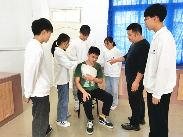 参赛队员正在进行包扎培训