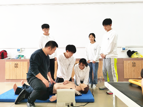 参赛队员正在进行心肺复苏培训