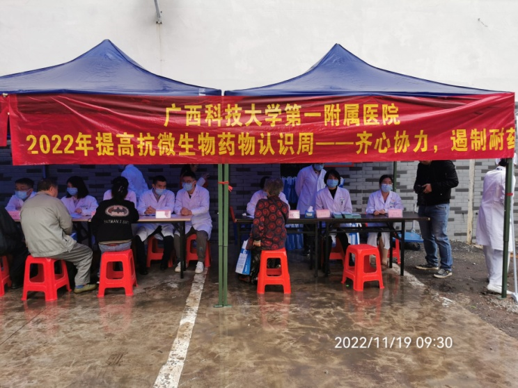 “2022年提高抗微生物药物认识周”是今年11月18日至24日,活动主题是“齐心协力 遏制耐药”。广西科技大学第一附属医院开展抗微生物药物合理使用知识培训、义诊和科普活动,通过微信公众号推文、LED屏幕展示视频、张贴海报标语、发放科普手册等方式,广泛宣传抗微生物药物合理使用知识,提高社会公众和医务人员对耐药危机的认识,树立正确用药观念,减少不必要的药物使用,营造全社会关心、支持和参与抗微生物药物合理使用的良好氛围。