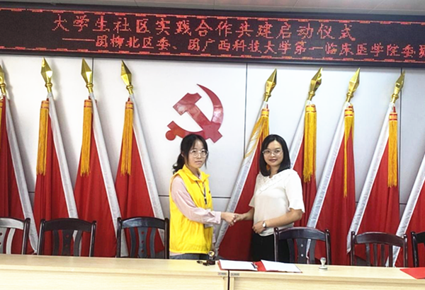 第一临床医学院与柳北区团委将进一步合作开展形式多样的志愿服务,让广大青年在社会日新月异地变化中,深入社会,感受生活,用大家的眼睛捕捉亮点,感受祖国的发展变化。通过合作共建活动,整合学院和社区双方在人才、信息、实践平台等方面的优势,组织大学生走进社会基层,了解社会实际、服务人民群众、增强时代责任、提高社会化能力,尽可能为青年人才提供创新与发展的机会和平台。使广大青年牢记使命,坚定信念,知行合一,投身实践,到艰苦的环境中磨炼自己,在实践行动中提高自己,以智慧为帆,用青春作桨,在实践的海洋里乘风破浪,谱写新的华章!