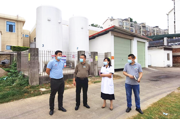 闭雄杰(左二)黄进瑜(右二)到液态氧站检查