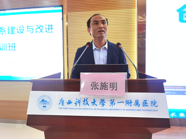 我院副院长张施明主持了开班仪式,对各位专家及参会同仁们表示热烈欢迎。张施明副院长表示,创伤急救是我国医疗体系的重要组成部分,是突发事件紧急医学救援过程中的重要一环,直接关系到人民群众的生命健康,加强“创伤中心”建设,彰显出广西科大一附院人的责任和使命。