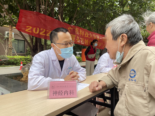 10月28日,广西科技大学第一附属医院到胜利社区开展“服务百姓健康行动”大型义诊,来自康复医学科、全科医学科、神经内科、心血管内科、内分泌科和急诊科等多学科专家,联合门急诊第二党支部、内科第四党支部、后勤第二党支部的医护人员,为广大市民开展健康科普及医疗义诊活动。