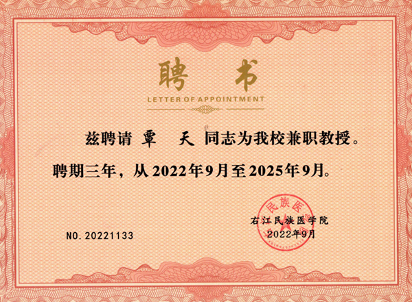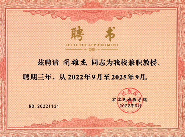 聘任兼职教授、副教授是学校加强师资队伍建设的重要内容,对加快学校人才培养、学科建设、扩大社会影响,推进开放办学具有重要意义。右江民族医学院对申请者职业素养、技术水平、教学师资、科研业绩等多方面有着较高的要求。经过层层筛选,我院五位专家凭借不俗的综合实力成功入选。(继续教育科 韦芳)