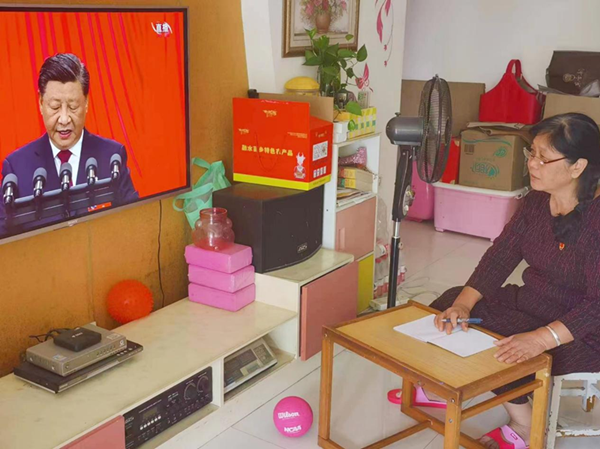 离退休同志在家观看直播