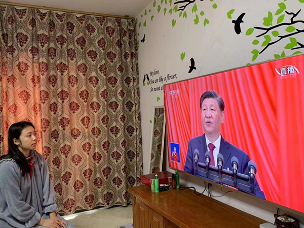 支援边境抗击疫情队员张连喜观看直播