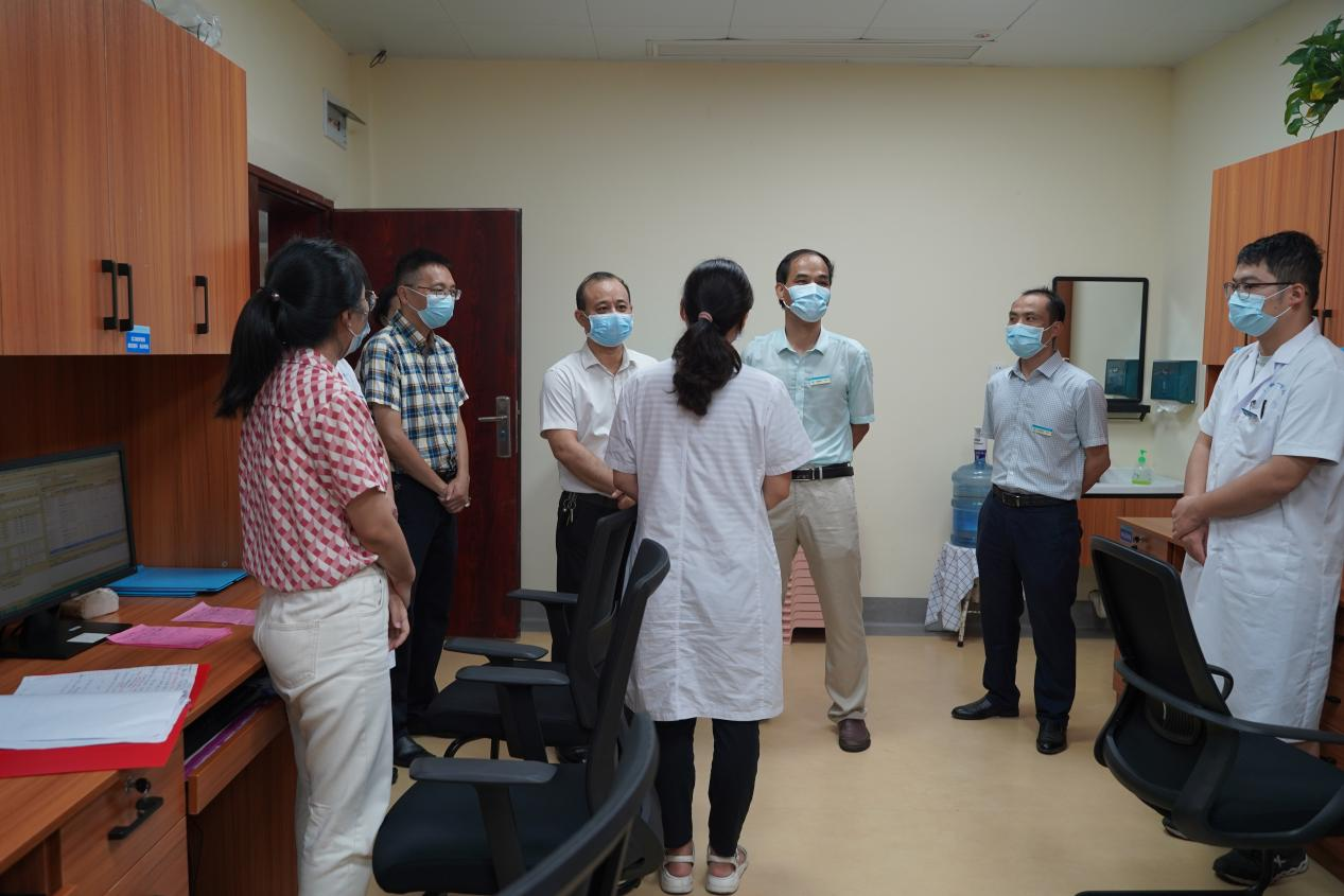 党委书记庞晓红(右一)、党委副书记、院长覃天(左二)等慰问值班医生