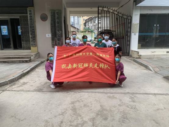 他们就是两个月内无缝转战北海、靖西、凭祥三地的“逆行天使”,来自广西科技大学第一附属医院抗击新冠肺炎先锋队的韦桂枝(队长)、王连凯、蒙彦晨、傅观英、钟雪梅、黄江蓓、陈松艳、曾利雯、卢迎宵、朱夏敏。