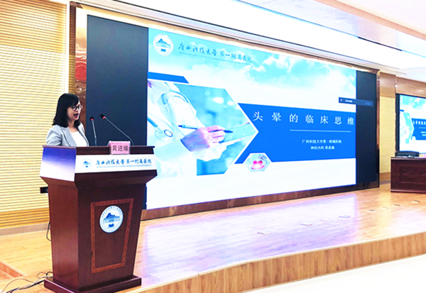 广西科技大学第一附属医院神经内科黄进瑜教授授课《头晕的诊疗思维》;广西科技大学第一附属医院骨二科赵顺吕教授授课《椎管内肿瘤诊治经验分享》;广西科技大学第一附属医院中医科覃香教授授课《雷火灸在皮肤科的临床运用》;广西科技大学第一附属医院傅婷教授授课《浅谈小儿遗尿》;广西科技大学第一附属医院顾天琪讲师和覃艳婷讲师进行了病例分享。