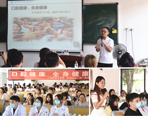 “喜迎二十大,科普向未来”。第34个“9.20全国爱牙日”伴随着金秋到来。今年全国爱牙日活动主题为“口腔健康,全身健康——护牙健齿少年强,健康中国民族兴”。近日,广西科技大学第一附属医院口腔科联合口腔门诊部,响应口腔医学会号召,在院领导的部署和支持下,紧扣爱牙日主题特色,走进校园,融入广大学子,在广西科技大学第一临床医学院举办了一场别开生面的口腔健康讲座。