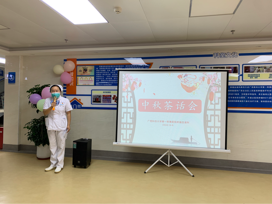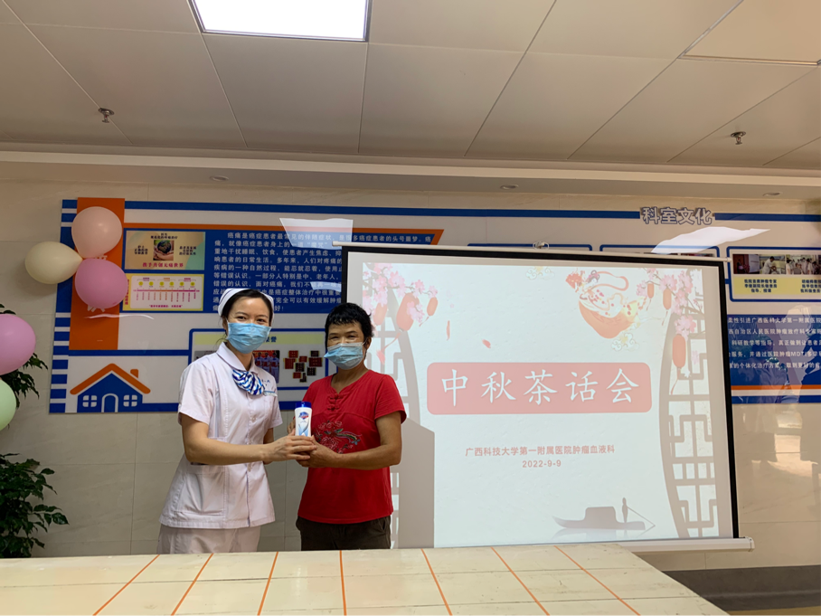 “但愿人长久,千里共婵娟”。中秋节是中国传统的团圆节,人们对亲人的思念在秋季凉夜、异乡处境犹显忧思,正值中秋节来临之际,肿瘤血液科组织举办了一场中秋茶话会,让住院患者感受到医院的关心和关爱。