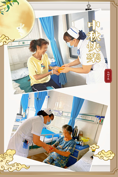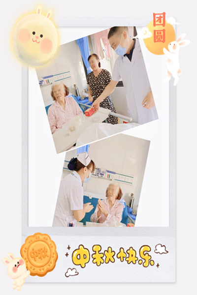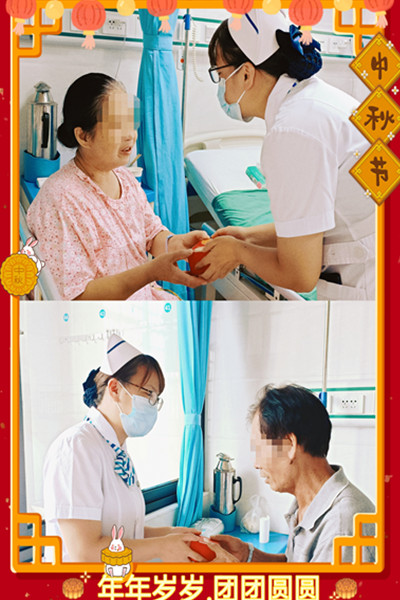 看到患者接过了这份小小的心意,激动的握住甄主任的手,脸上也露出了久违的笑容。看到这一幕幕、看到患者一天天康复,对我们医务人员来说肩上的责任感和使命感油然而生。在此肝胆外科甄宏云主任和全体的医务人员祝大家中秋快乐,阖家幸福安康。