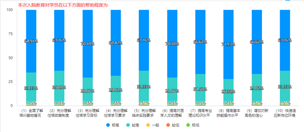 最后,住培科通过问卷调查的方式,组织学员对入院教育的组织安排、培训效果、学习收获等进行评价,并反馈。