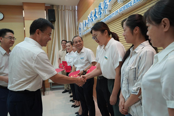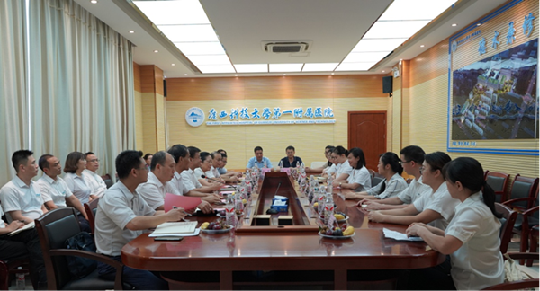 为在第五个“中国医师节”来临之时,向奋战在一线的医务工作者表达上级党委的关怀。8月19日下午,广西科技大学党委书记赵君、广西科技大学党委常委、副校长秦小云、广西科技大学党政办、宣传部、组织部、统战部、人事处、工会等相关处室的主要领导到我院进行医师节慰问,我院党委书记庞晓红、党委副书记、院长覃天等院领导陪同慰问。