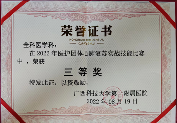 全科医学科荣获医护团体心肺复苏实战技能比赛三等奖