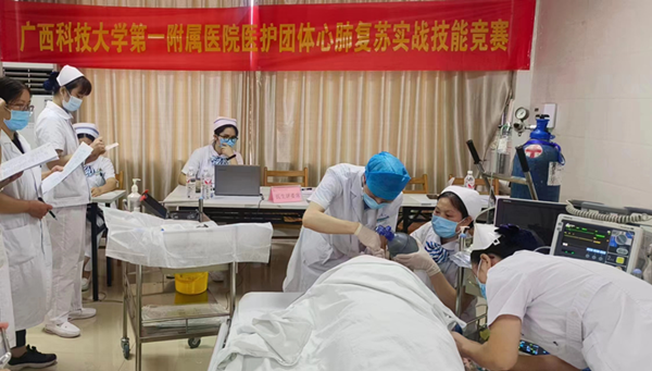 全科医学科心肺复苏参赛团队在紧张比赛中