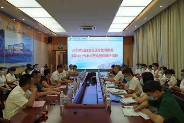 8月25日上午,自治区医疗管理服务指导中心副主任黄宗金(主持全面工作)带领调研组一行8人到我院就公立医院绩效考核工作进行调研。我院党委书记庞晓红、党委副书记、院长覃天等党政领导班子出席调研交流会并陪同调研。