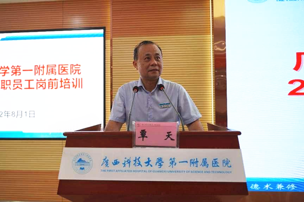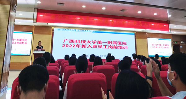 凝聚新力量 开启新征程。为使新职工尽快融入新的工作和生活环境,增强职工的责任感、使命感,更好地履行医务工作者的岗位职责,8月1日下午,“广西科技大学第一附属医院2022年新入职员工岗前培训”在学术报告厅拉开帷幕。医院(学院)党委书记庞晓红、党委副书记、院长覃天等领导班子成员出席开班仪式。仪式由党委副书记何曲波主持。