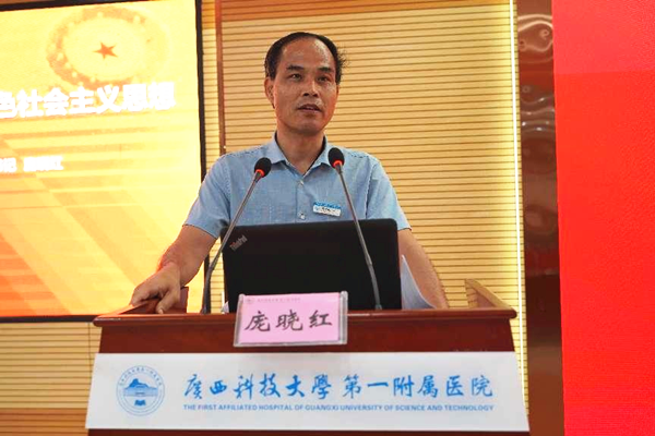 最后,党委书记庞晓红通过丰富的理论知识联系实际,给新职工们上了一堂别开生面的党课《学习习近平新时代中国特色社会主义思想》。他对新职工们提出了要坚守初心 做新时代的好医生的要求,要做到:践行医者初心,需要我们锤炼过硬本领做到心中有“技”;践行医者初心,需要我们树牢宗旨意识,做到心中有“民”;践行医者初心,需要我们具有强烈的担当精神,做到心中有“责”。