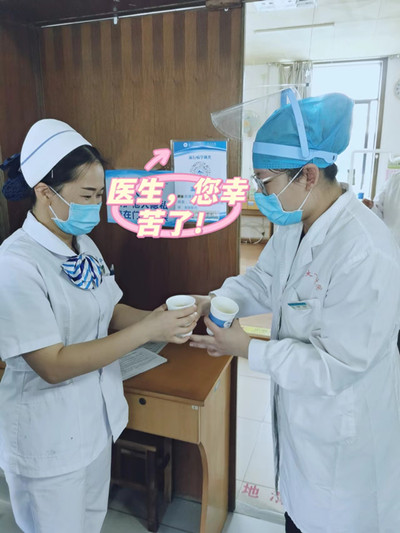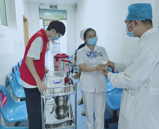 为奋战在一线工作岗位上的医生们递杯茶