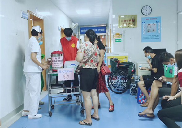“爱心送水车”巡回门、诊急诊区域送水