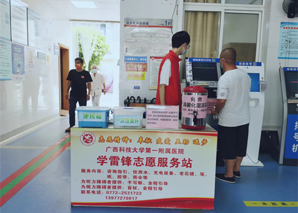 酷暑节气,一辆承载着满满爱心的送水车,在广西科技大学第一附属医院门、急诊候诊区巡回,为前来就诊的市民朋友提供免费消暑化湿凉茶。