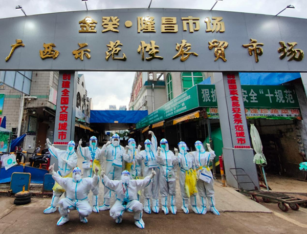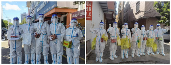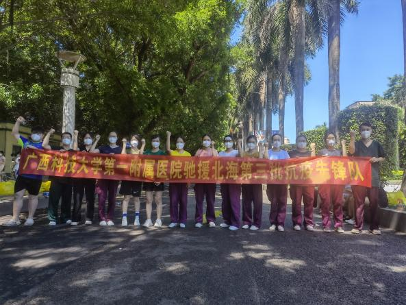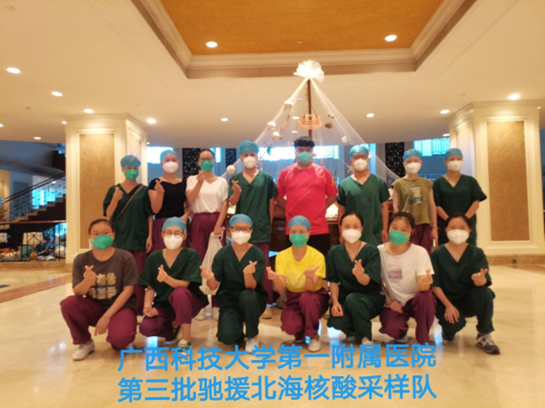 这群团结的“大白”,就是来自广西科技大学第一附属医院驰援北海核酸采样队。他们中有任务总抢着先上的:吕旋、王连凯、朱文毅、曾利雯、傅观英;有默默工作却总是把工作量完成最多的:沙毅筠、卢迎宵、梁丽娟、蓝茜、罗丹;有第一次参加抗疫而义无反顾的:蒙彦晨、韦翠薇;有开始执行任务就会晕厥,而后愈战愈勇的:凌玉莲、覃暕。面对疫情,他们逆行踏上征途、向险而行,用温情抗击疫情,用坚守点燃希望。