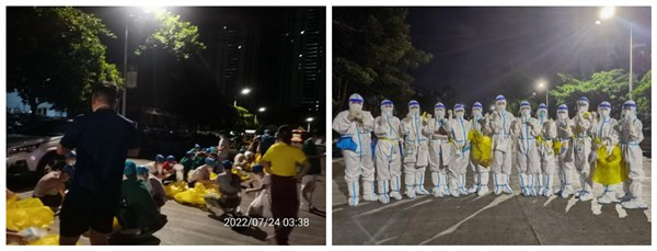 他们闻令而动,日夜兼程。一天零时刚完成任务准备休息,刺耳的电话打破了他们的计划:紧急任务,立即集合出发!没有一丝犹豫,凌晨3点,这伙人又踏着夜色出发了,整理装备、进入封控区、爬楼、敲门、采集……当清晨的第一缕阳光升起,队员们踏着坚定的步伐,再次圆满完成任务!