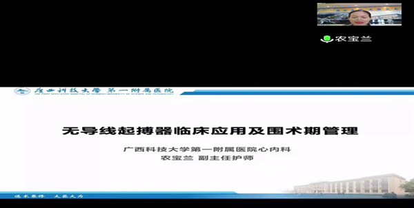 其次,广西科技大学第一附属医院心血管内科护士长 副主任护师农宝兰带我们走进无导线起搏时代,由她讲授《无导线起搏器临床应用及护理》。