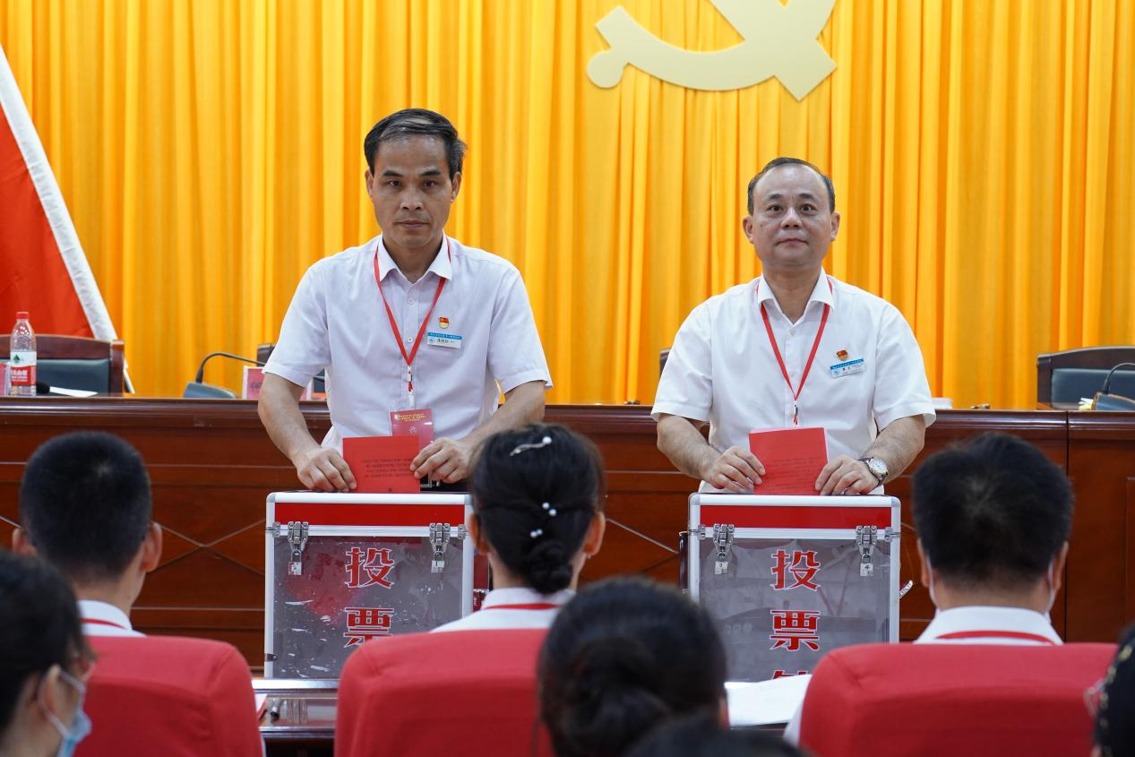 开幕式后,在主席团的领导下,各代表团分组认真讨论并审议通过了“两委”工作报告的决议;全体代表以无记名投票方式选举产生了中共广西科技大学第一附属医院(第一临床医学院)第二届委员会9名委员(以姓氏笔画为序):闭雄杰、李俊、何曲波、张云波、张施明、庞晓红、覃天、蒲祖康、潘旭,庞晓红当选为党委书记,何曲波、覃天当选为党委副书记;选举产生了中共广西科技大学第一附属医院(第一临床医学院)第二届纪律检查委员会5名委员(以姓氏笔画为序):王井春、卢翠梅、陈杰、覃丽娜、潘旭,潘旭当选为纪委书记,陈杰当选为纪委副书记。