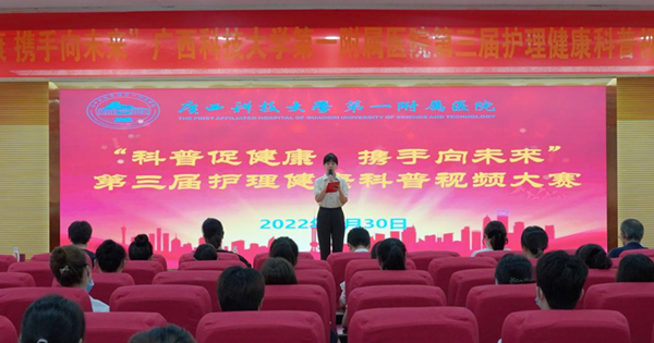 为深入贯彻落实健康中国、健康广西及医院健康行动,大力普及科普健康知识,提升全民健康素养。7月30日下午,由广西科技大学第一附属医院护理部牵头,联合医院工会及预防保健科,成功举办了以“科普促健康,携手向未来”为主题的第三届护理健康科普视频大赛。