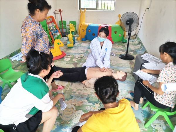 服务队为村民进行心肺复苏、急救知识培训