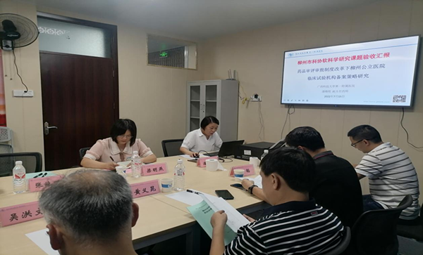 7月15日,广西科技大学第一附属医院在科研中心会议室举行我院柳州科协软课题《药品审评审批制度改革下柳州公立医院临床试验机构备案策略研究》结题验收会。会议由柳州市科学技术协会领导主持,项目负责人潘晓艳及课题组成员参加会议。