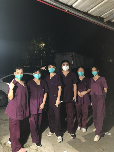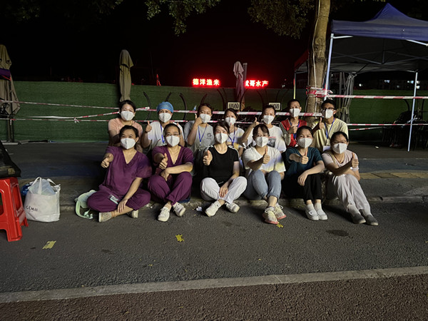 我们的任务基本都是半夜下达,凌晨开始准备物资,等待命令随时出发。如果是早上的任务我们通常4点起床,出发下点,6点多就开始工作。第一天在站台前第一个采集的是个约五十岁左右的大叔 ,采集完说了一句,谢谢你们,辛苦了~虽然只是一句简单的话,但真的让人觉得动力十足。接着第二、第三、第四个……大家像是约好了一样都说着同样的话,甚至两三岁的孩子都奶声奶气地说“医生,我会配合你的~爱你们!”就这么一直工作到下午两点,我们滴水未进,肚子也不争气地叫了一遍又一遍,但从20多岁的韦萍萍到资深护士莫美艳、夏静洁、陈丽杨几位老师,没有一个人叫苦叫累。我们50多岁的莫美艳老师也只是在高强度的工作结束以后才感觉自己心跳加速,都全身心的投入忘我工作。