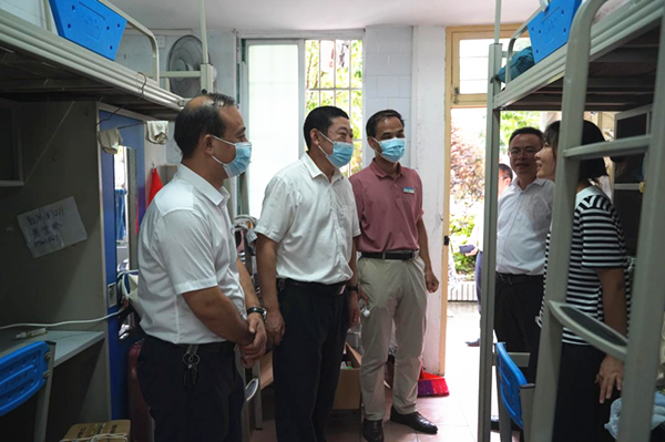 随后,刘宝臣校长前往第一临床医学院实地调研。他来到学生宿舍,看望还在校的学生,叮嘱他们要注意安全、注意身体,在假期里劳逸结合、安排好学习生活。刘宝臣校长还来到肿瘤科病房,对住在这里的病人进行慰问,并对一临床教学区、门诊、医技楼、发热门诊(在建)等重点区域进行了检查。