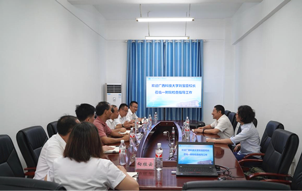 7月4日下午,广西科技大学党委副书记、校长刘宝臣到广西科技大学第一附属医院(第一临床医学院)调研。院党委书记庞晓红、党委副书记、院长覃天,学校党政办副主任梁茜茜等相关领导陪同调研。