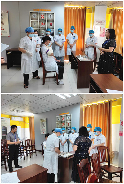 之后,闭雄杰副院长参观了卫生院并访谈了学员。林素珍科长对基地台账进行了检查,黄进瑜及韦彬两位专家对临床技能带教进行督导。