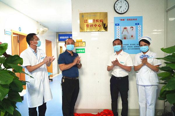 党委副书记、院长覃天在揭牌仪式上致辞。他指出,我院率先建立泛血管疾病管理中心,是我们医院实现高质量发展征途中的一个非常重要工作,具有里程碑意义,也是我院在血管疾病诊治方面具有较强综合实力一个体现。对我们医院来说,建立泛血管疾病管理中心,建设泛血管疾病管理体系,有助于提升我院泛血管疾病综合防治水平,有助于提升我院多学科协作的水平与能力,有助于推进我院相关学科的高质量发展,有助于我院为患者提供更优质高效的医疗服务。他对泛血管疾病管理中心的建设工作提出四点要求:一是要提高认识,充分领会泛血管疾病管理体系建设的重要性;二是要加强落实,确保各项工作落到实处;三是要持续完善制度流程,建立工作的长效机制;四是加强宣传,厚植泛血管疾病管理体系建设的浓厚氛围。