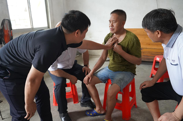 回访的患者都是古楼村村民,古楼村位于忻城县果遂镇西北方向,是一个依山而建的小山村。从柳州市区前往到达古楼村,全程需要2个小时,尽管山道盘旋狭窄,但丝毫挡不住专家们急切想要见到患者的心情。