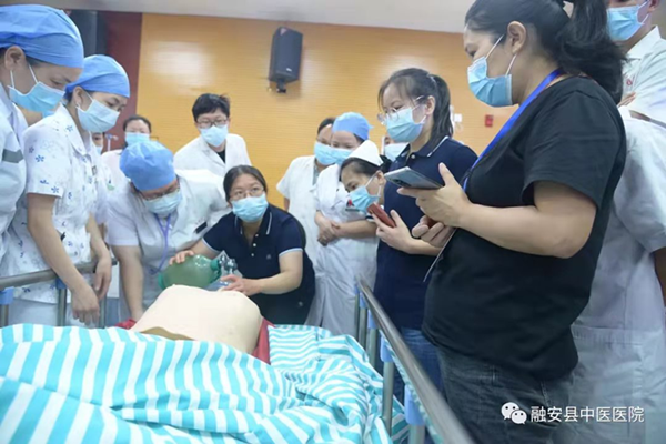 在6月9日,考核组长陈新副主任就接到融安县中医院传来的喜讯,考核结束当天中午12点,该院心内科抢救一个心梗心脏骤停的病人也按压回来送ICU,晚上12点急诊科出诊接一个老人家(呼吸困难)心脏骤停的在救护车上复苏成功,安全送到lCU。