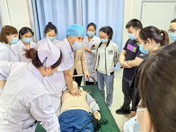 韦建革主任带领急诊科团队为本院医护人员代表进行心肺复苏团队技能训练指导