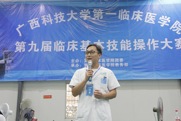 为进一步推动医学教育临床实践教学改革,促进医学生理论与实践的有机结合,提升医学生的创新能力和团队精神,促进全体医学生临床实践能力整体提高。2022年6月10日上午八点,广西科技大学第一临床医学院(第一附属医院)在院体育馆举办第九届临床基本技能操作大赛。学院(医院)党委副书记何曲波、副院长闭雄杰出席开幕式,副院长闭雄杰讲话,学院(医院)各教研室主任、教务部、学工办负责人等领导老师及医院专家评委参加大赛。
