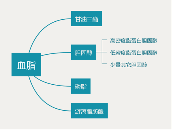 什么是血脂?血脂是血清中所含脂质的总称,包括甘油三酯(又叫中性脂肪)、胆固醇(含胆固醇酯和游离胆固醇)、磷脂和游离脂肪酸。