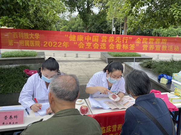 2022年5月15-21日是第8届全民营养周,5月20日是第33届“5·20”中国学生营养日。广西科技大学第一附属医院临床营养科按照全民营养周宣传活动计划,有条不紊开展了宣传周启动仪式、营养科普义诊、营养知识讲座、发布微信系列推文、宣发营养宣传折页等,线上线下相呼应的多形式活动内容,现已圆满的结束。