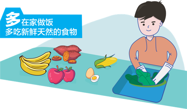 健康饮食的关键在于“平衡”。同样的食物,加工方法不同,会有不同的营养素密度和健康效益。鼓励“多吃”的食物多为简单加工食品和营养素密度高的食物;应少吃深加工的食品。除平衡膳食以外,还要保证孩子们每天吃五种蔬菜,多饮水少喝含糖饮料,正确选择零食,保证充足的睡眠,规律运动。