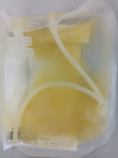 人体血液由血浆、血小板和白细胞、红细胞组成,而冷沉淀凝血因子是新鲜冰冻血浆在1~6℃条件下不溶解的白色沉淀物,是新鲜冰冻血浆的部分浓集制品。在-20℃以下保存,有效期从采血之日起一年。1个单位的冷沉淀凝血因子由200ml新鲜冰冻血浆制成,约为20~30ml,主要含有≥80IU凝血因子Ⅷ ,150~200mg纤维蛋白原,以及凝血因子ⅩⅢ等。输注前应在37℃水浴中10分钟内解冻,解冻过程必须不断轻轻晃动,解冻后的冷沉淀凝血因子,切记不可再次进行冰冻。