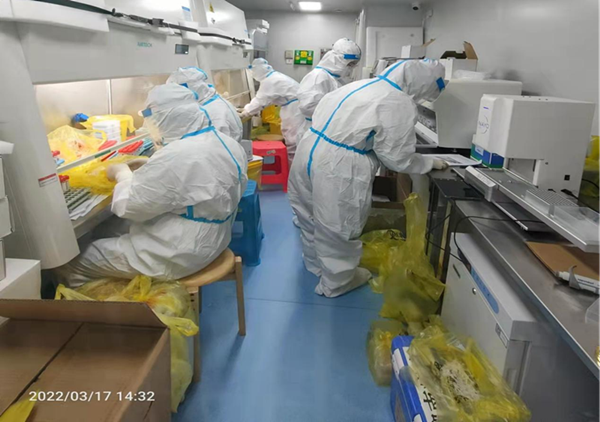 医学检验科除了要做好每日门诊和住院患者的标本外,面对大规模核酸检测时,我们还要肩负起额外的核酸检测任务。科室的工作人员不足三十人,因疫情防控需要,三、四月又同时派出六名人员到各地支援。在人员极度紧缺的情况下,面对大批量核酸检测时,大家主动取消休假,主动报名加班,尽显一个集体的团结精神。